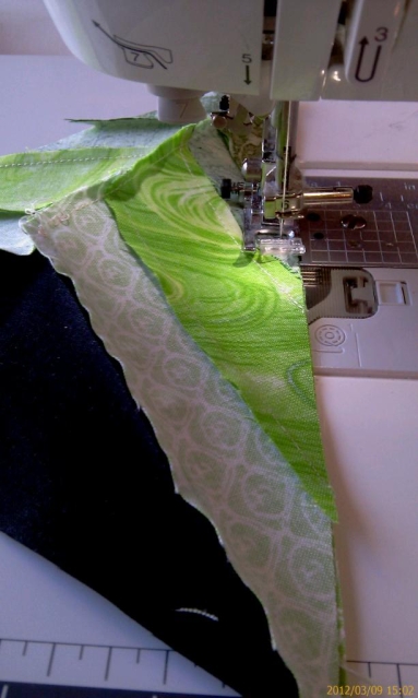 I got through cutting my 1 1/2'' strips of the pink, blue and part of the green to realise that the 2 greens between the light and dark are the same shade.. I need to fix that, ugh! so.. Not that I dont want to go back to the fabric store which I'm indifferent about I texted my sister C asking her if she had a mid-light green color.. next I'll ask mom.. Then, I'll revisit the fabric store.. After cutting and breaking up a few dog fights (they are puppies and they will play) I started working on the flying geese for Jazz's Project.. The book I'm working out of has a away of making thses flying geese like I've not done before.. Its really slick..